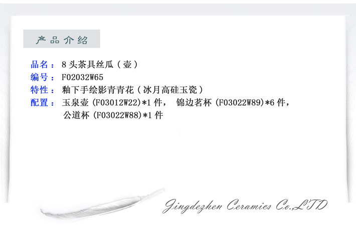8頭手繪青釉功夫茶具-靈祝富貴