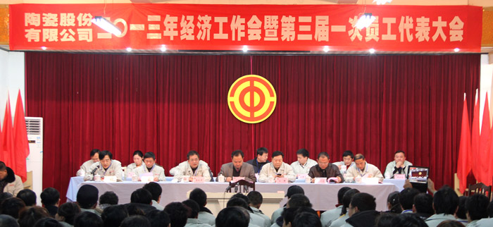在市政協(xié)、市人大“兩會(huì)”勝利閉幕之際, 2013年1月17日下午,景德鎮(zhèn)陶瓷股份有限公司2013年經(jīng)濟(jì)工作會(huì)暨第三屆一次員工代表大會(huì)在公司五樓會(huì)議室隆重召開。