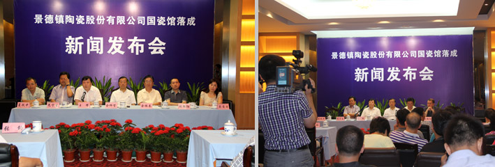 2011年8月8日上午10點28分,景德鎮(zhèn)陶瓷股份有限公司在公司多功能廳舉辦國瓷館落成新聞發(fā)布會。市人大副主任、市委秘書長余振泰,市國資委、市旅游局、市瓷局等60余位領導、省、市15家新聞媒體及公司有關負責人出席了新聞發(fā)布會。