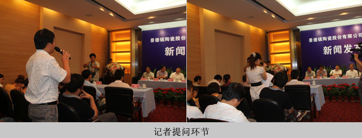 新聞發(fā)布會上,市人大副主任、市委秘書長余振泰,市政府副秘書長、市國資委黨委主任劉朝陽,市旅游局局長饒寧生,陶瓷股份公司黨委書記、董事長王耀、黨委副書記、總經(jīng)理夏躍中等相關人員就陶瓷股份公司近年來的發(fā)展、公司工業(yè)旅游發(fā)展、實施品牌戰(zhàn)略等方面回答了與會新聞媒體記者的提問。
