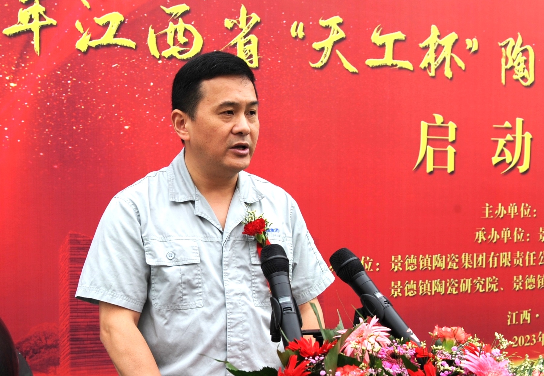 在啟動(dòng)儀式上,景陶集團(tuán)黨委書記、董事長(zhǎng)鄧景揚(yáng)代表大賽的協(xié)辦方向光臨啟動(dòng)儀式的各位來賓表示歡迎和感謝!鄧景揚(yáng)在致辭中表示,帶著習(xí)總書記的囑托,我們迎來了“2023年江西省天工杯陶瓷行業(yè)職工職業(yè)技能競(jìng)賽”。習(xí)總書記的殷殷囑托,對(duì)于陶瓷產(chǎn)業(yè)工人來說,是鼓舞,是關(guān)切,更是振奮人心!建設(shè)一支高素質(zhì)的陶瓷產(chǎn)業(yè)工人隊(duì)伍,展示我們陶瓷行業(yè)職工職業(yè)技術(shù)水平,是我們企業(yè)高質(zhì)量發(fā)展的基石,更是弘揚(yáng)中國(guó)傳統(tǒng)陶瓷文化,推進(jìn)景德鎮(zhèn)國(guó)家陶瓷文化傳承創(chuàng)新試驗(yàn)區(qū)建設(shè)的一支強(qiáng)化劑。我們要時(shí)刻以習(xí)近平總書記的一句話勉勵(lì)自己:“一輩子做一件事,祖祖輩輩干一件事,不是簡(jiǎn)單的事。老祖宗傳下來的優(yōu)秀傳統(tǒng)文化,我們要繼續(xù)攥在手里,與時(shí)俱進(jìn),讓它發(fā)揚(yáng)光大?!鼻曛拼陕罚粝碌牟粌H是天青色的記憶,更凝聚著中華文明的古與今。