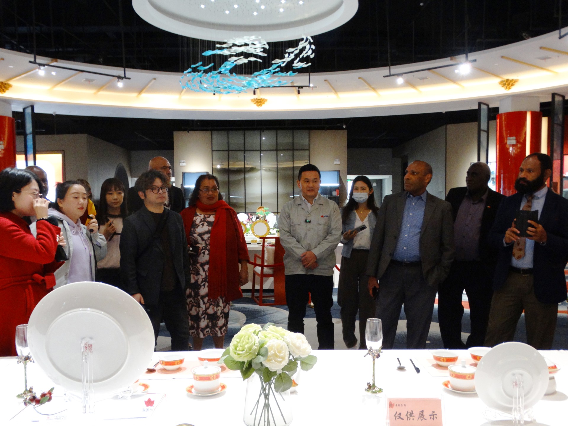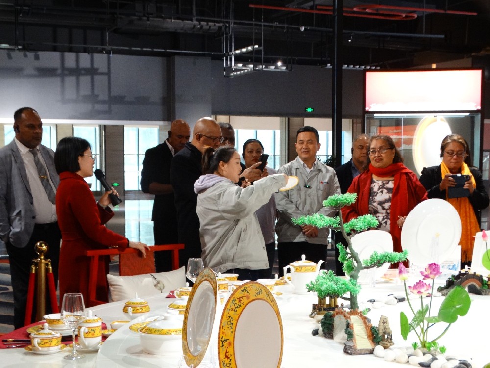 11月24日下午,太平洋島國議員研討班一行到景陶集團(tuán)考察。省人大常委會(huì)副主任胡世忠,省人大常委會(huì)秘書長、辦公廳主任楊文英,省人大常委會(huì)外僑民宗工委主任韓軍,省人大社會(huì)委副主任委員趙慧,省人大常委會(huì)辦公廳副主任溫雪松陪同。景陶集團(tuán)黨委書記、董事長鄧景揚(yáng)陪同接待。