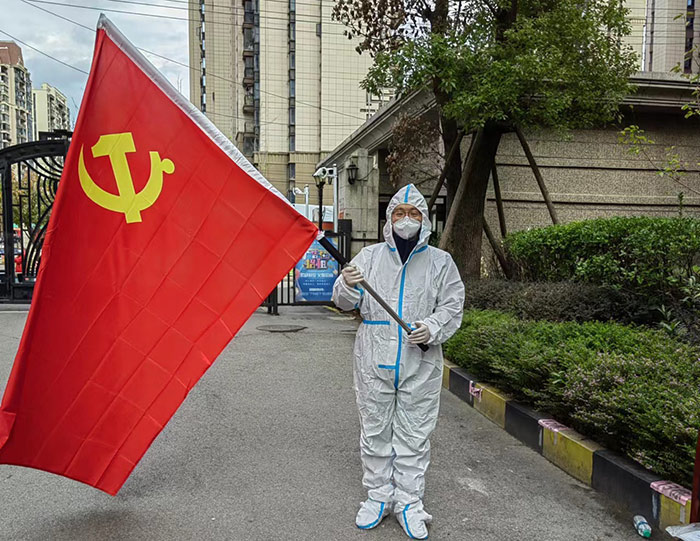 組織委員邵建華,自疫情發(fā)生以來,每天都值守在疫情一線,天沒亮他就到核酸檢測崗去維持秩序,核酸檢測完他又去卡口執(zhí)勤。不僅如此,因小區(qū)封控,環(huán)衛(wèi)車進(jìn)不來,他每天用自己的雙手將居民的生活垃圾一桶一桶的運(yùn)出,不怕臟,不怕累,只為還原小區(qū)一個干凈衛(wèi)生整潔的環(huán)境。