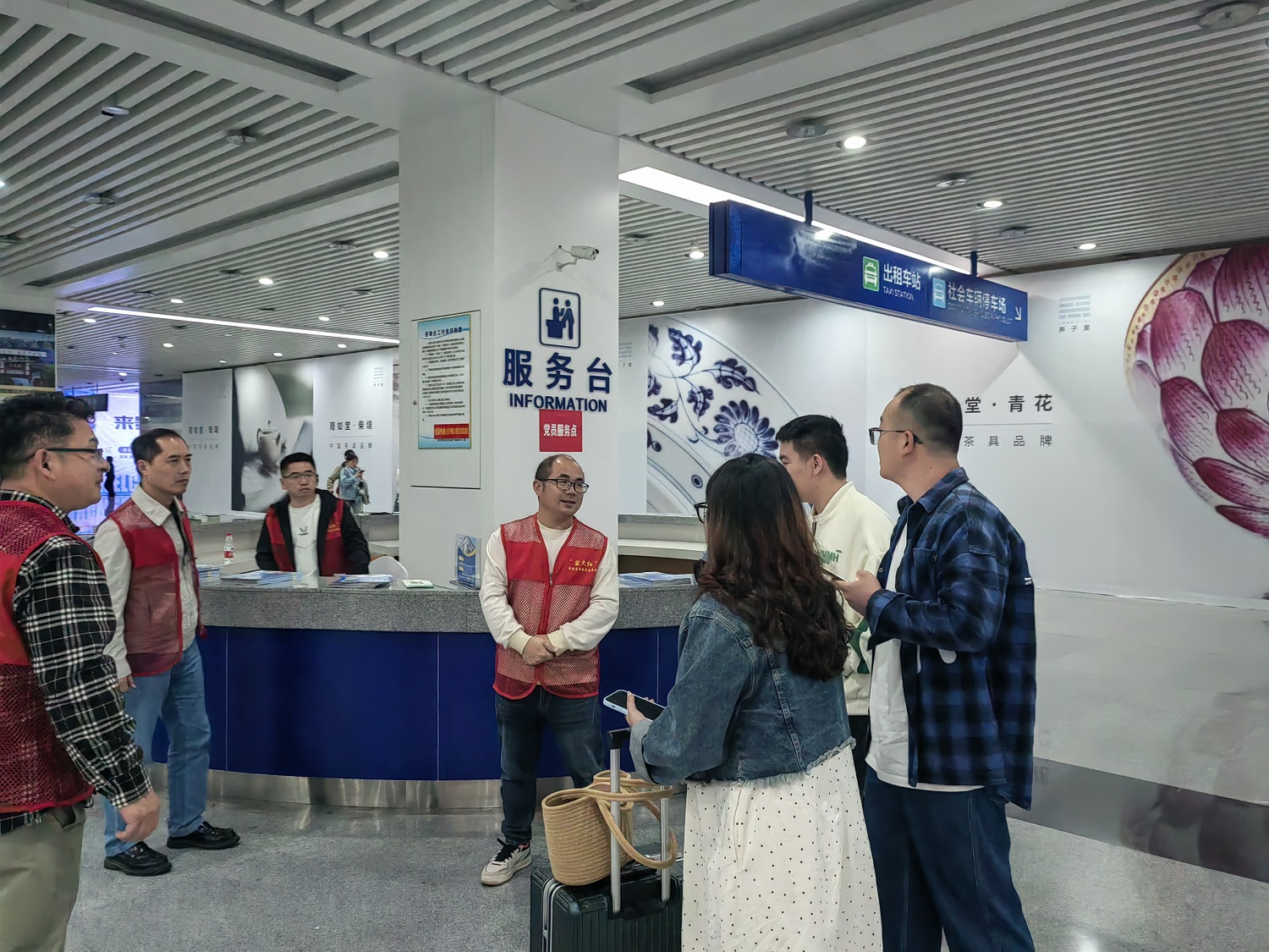 4月30日,五一假期前夕,景陶集團組織70多名黨員志愿者參加市“窯火紅”黨員志愿服務活動。他們身穿紅馬甲,忙碌穿梭在景德鎮(zhèn)北站南廣場,北廣場和羅家飛機場的旅客中,為來景游客指引路線,提行李,推介美食美景美宿,引導車輛有序停放等,送上熱忱暖心的服務,流動的紅馬甲成為一道靚麗的“風景線"。