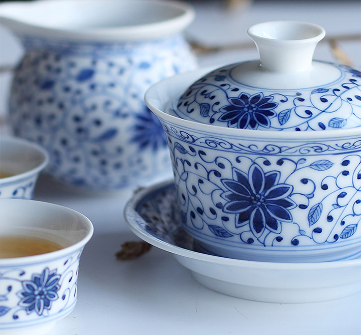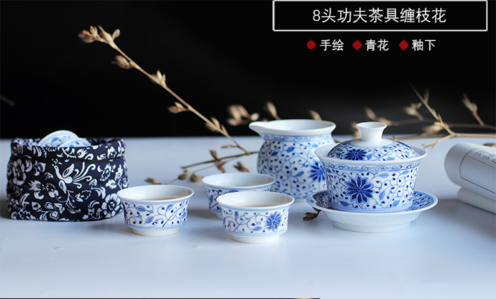 8頭玲瓏功夫茶具開堂山水蓋碗