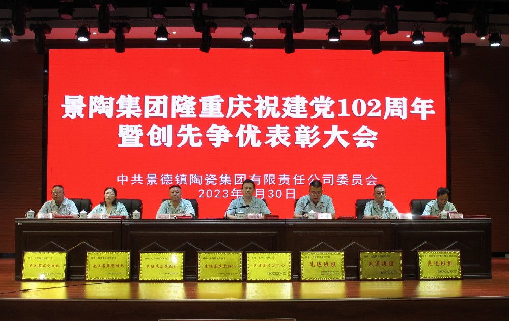 6月30日下午,景陶集團(tuán)隆重召開(kāi)慶祝建黨102周年暨創(chuàng)先爭(zhēng)優(yōu)”表彰大會(huì)。大會(huì)由集團(tuán)黨委副書記、總經(jīng)理邢浩主持,集團(tuán)領(lǐng)導(dǎo)班子成員、全體共產(chǎn)黨員、副處級(jí)以上人員及獲獎(jiǎng)先進(jìn)集體代表、先進(jìn)個(gè)人和金牌員工等200余人參加大會(huì)。